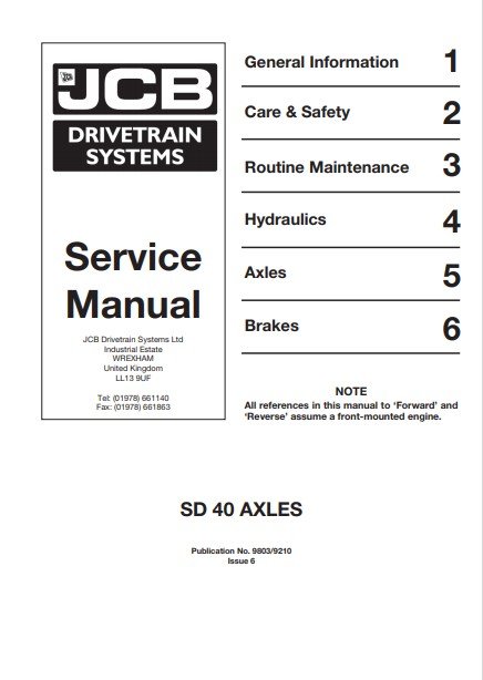 JCB Drivetrain SD40 Axles Service Repair Manual