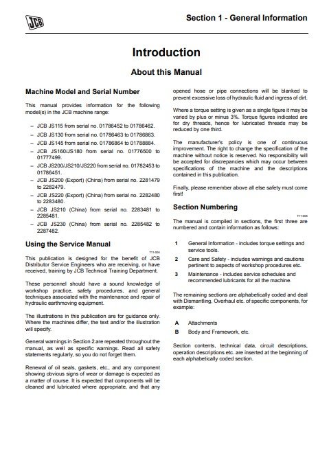 With This Original Factory Service Repair Manual The Technician can Find and Solve any problems encountered in the operation of your JCB JS Excavator Models of :