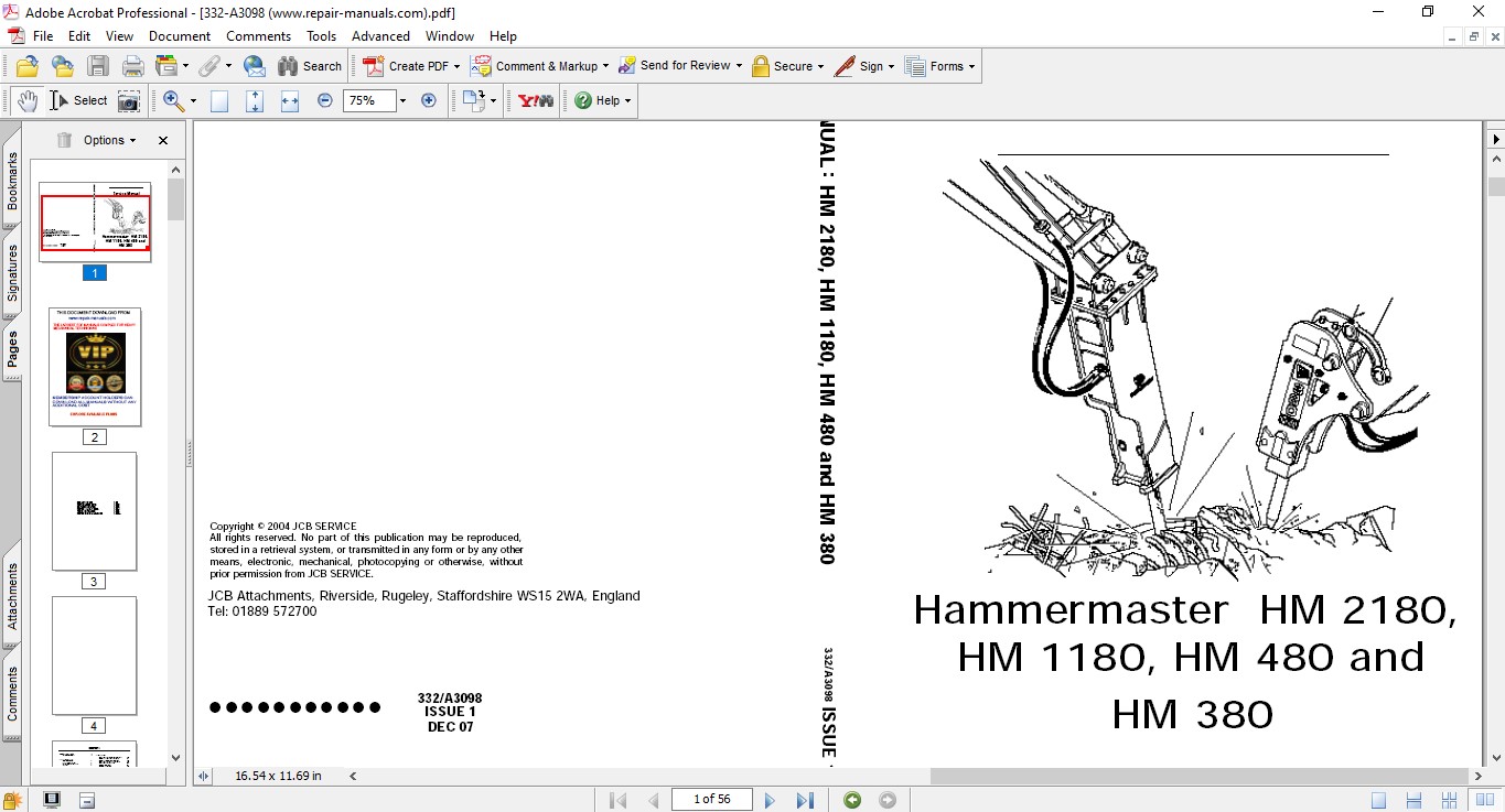 JCB HM 2180, JCB HM 1180, JCB HM 480, JCB HM 380 Hammermaster Service Repair Manual