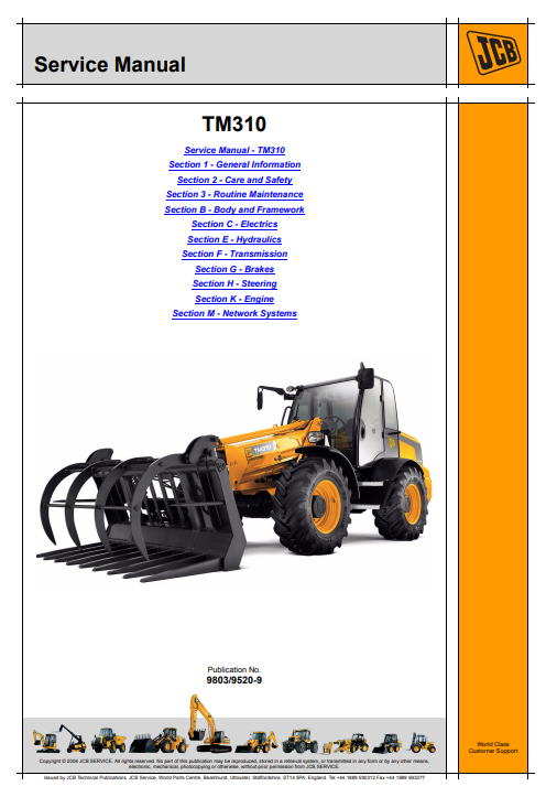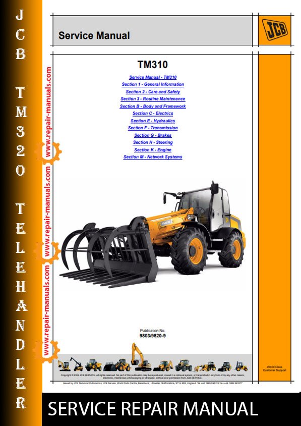 With this original factory workshop manual, the technician can detect and solve any problems encountered when repairing your jcb telehandler and This workshop repair manual for the JCB TM320 Agricultural Teletruk provides detailed instructions and technical information for maintenance and repair tasks to keep your equipment in top condition.
