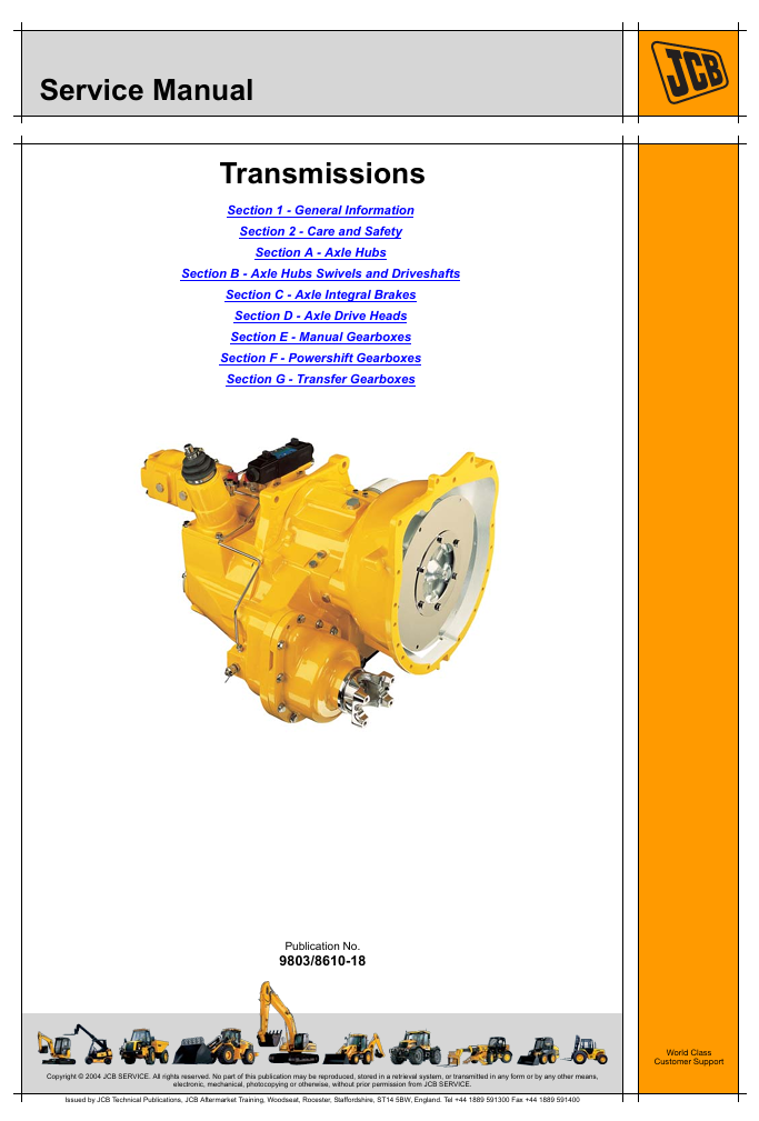With This Service Repair Manual The Technician can solve any problems encountered in the operation of your JCB Transmissions