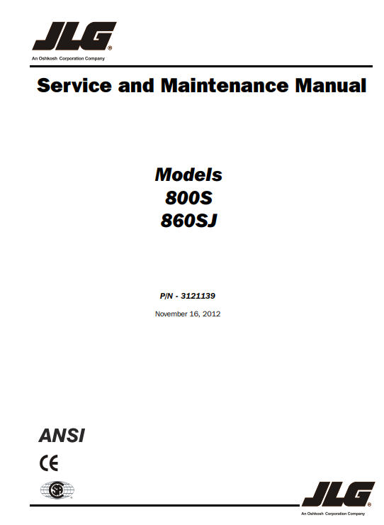 Compatible Model :JLG 800S, 860SJ Telescopic Boom Lift Service & Maintenance Manual