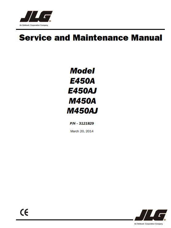 Compatible Model :JLG E450A, E450AJ, M450A, M450AJ Service and Maintenance Manual