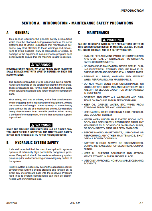 Compatible Model :JLG Lifttruck 800A , 800AJ Service and Maintenance Manual