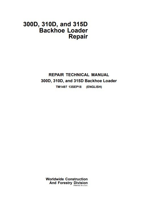 John Deere 300D , 310D, 315D Backhoe Loaders Repair Technical Manual