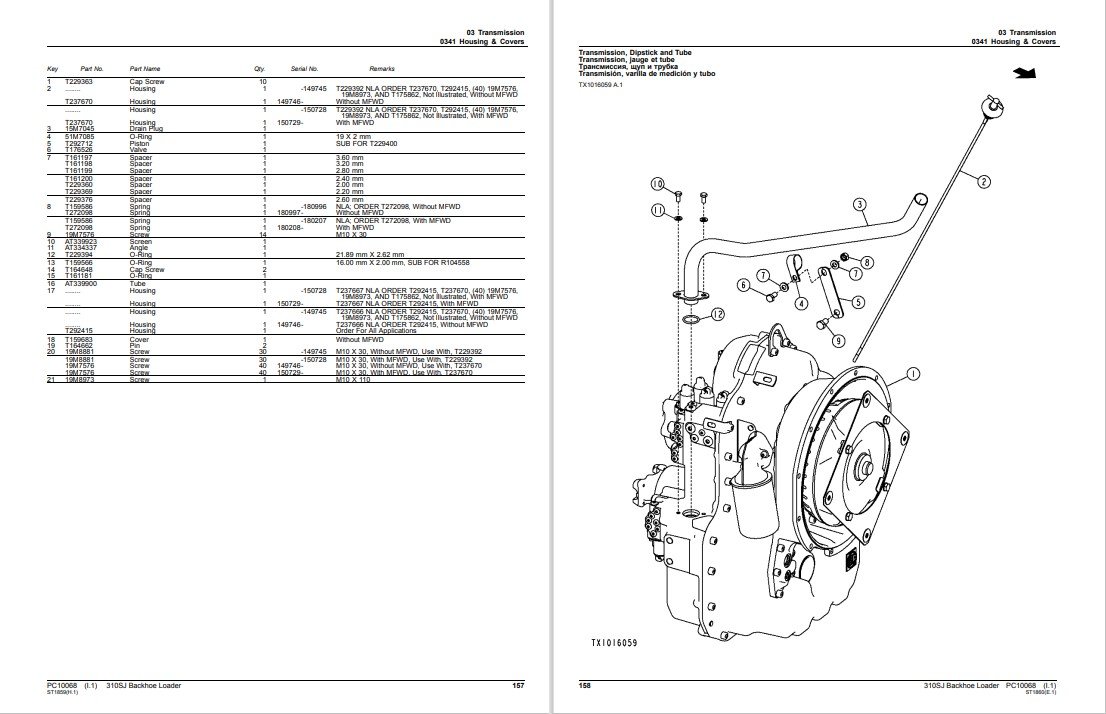 With This Original Factory Parts Manuals The Technician can easily find any Part Number and Correct Part encountered in the operation of your John Deere Backhoe Loader Models of :