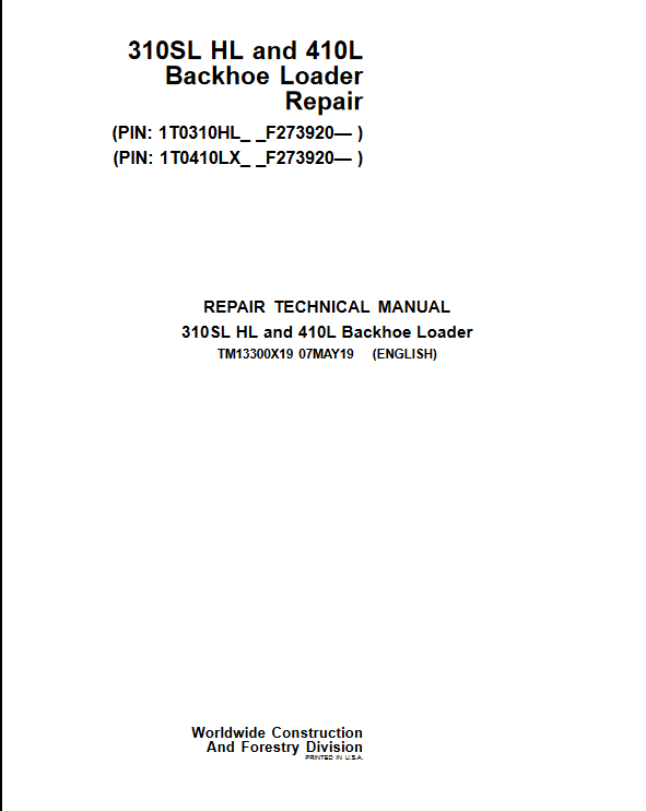 John Deere 310SL HL and 410L Backhoe Loader Repair Technical Manual