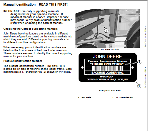 The Factory was highly recommended use this manual, Technicians before you touch John Deere Backhoe Loaders