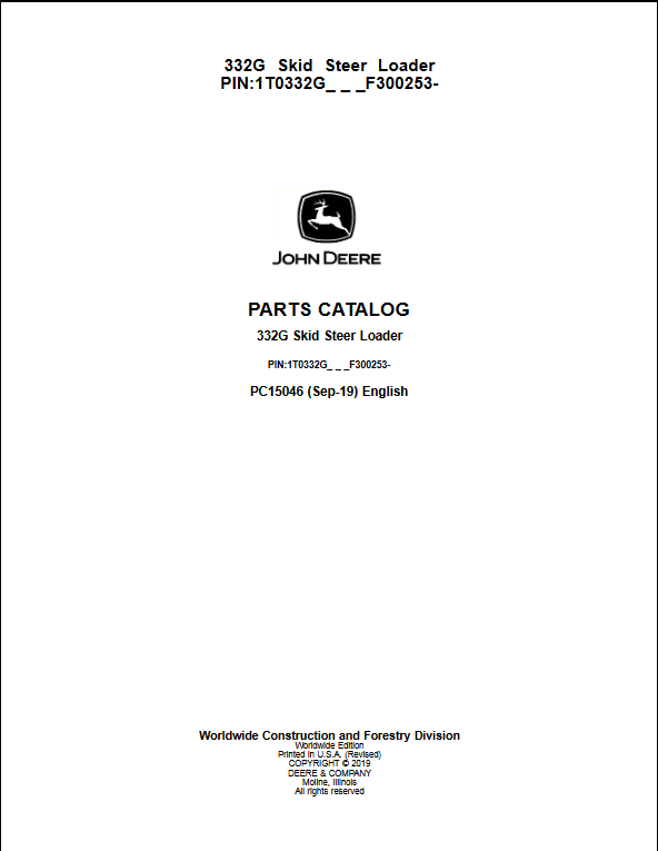 John Deere 332G Skid Steer Parts Manual