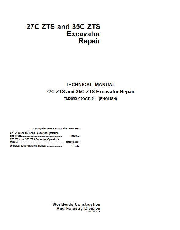 John Deere 27C ZTS and 35C ZTS Excavator Repair Technical Manual