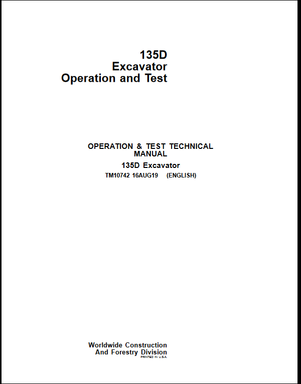 Enhance your operational efficiency with the John Deere 135D Excavator Operation and Test Manual. This comprehensive guide provides essential insights into the functionality and maintenance of your excavator, ensuring optimal performance and longevity. With detailed instructions and troubleshooting tips, you can confidently navigate any challenges, making it an indispensable resource for both seasoned operators and newcomers alike. Invest in this manual to maximize your equipment’s potential and streamline your excavation projects