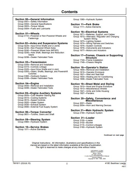 John Deere 410E Backhoe Loader Technical Repair Manual