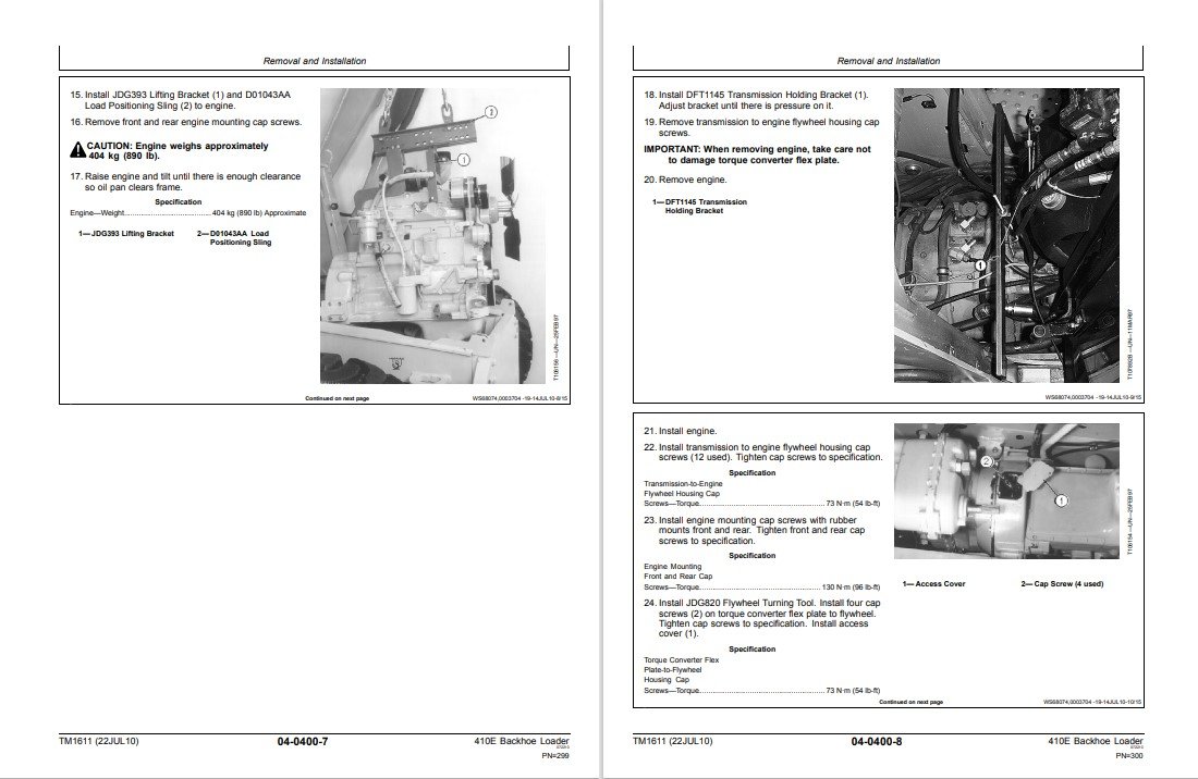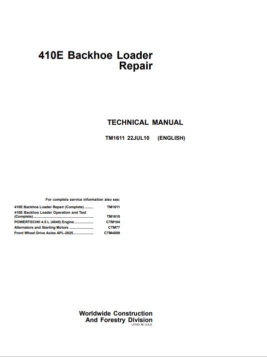 John Deere 410E Backhoe Loader technical manual, illustrating repair procedures and detailed maintenance informationJohn Deere 410E Backhoe Loader Technical Repair Manual