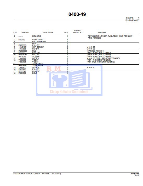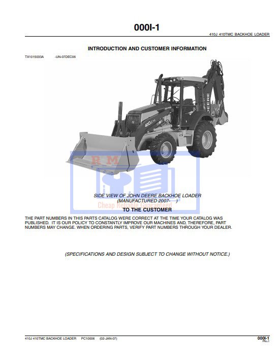 Enhance the performance and longevity of your John Deere 410J and 410TMC Backhoe Loader with our comprehensive Parts Manual. This essential guide provides detailed diagrams and specifications for all components, ensuring you can easily identify and source the right parts for maintenance and repairs. With clear instructions and expert insights, you can keep your equipment running smoothly and efficiently, minimizing downtime and maximizing productivity on the job site. Invest in your machinery’s reliability and performance today with this indispensable resource