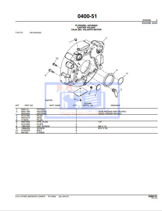 John Deere 410J and 410TMC Backhoe Loader Parts Manual