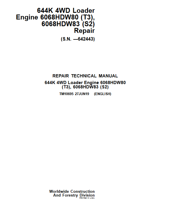 644K 4WD Loader Engine 6068HDW80 (T3), 6068HDW83 (S2)Repair (S.N. —642443)