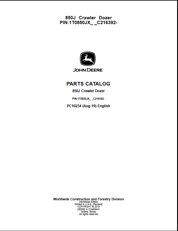 John Deere 850J Dozer Parts Catalog