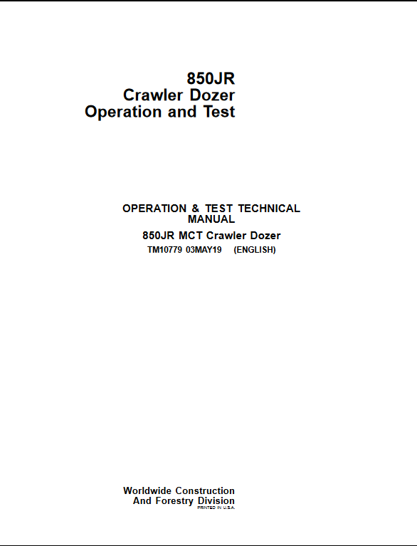 John Deere 850JR Crawler Dozer Operation and Test Manual