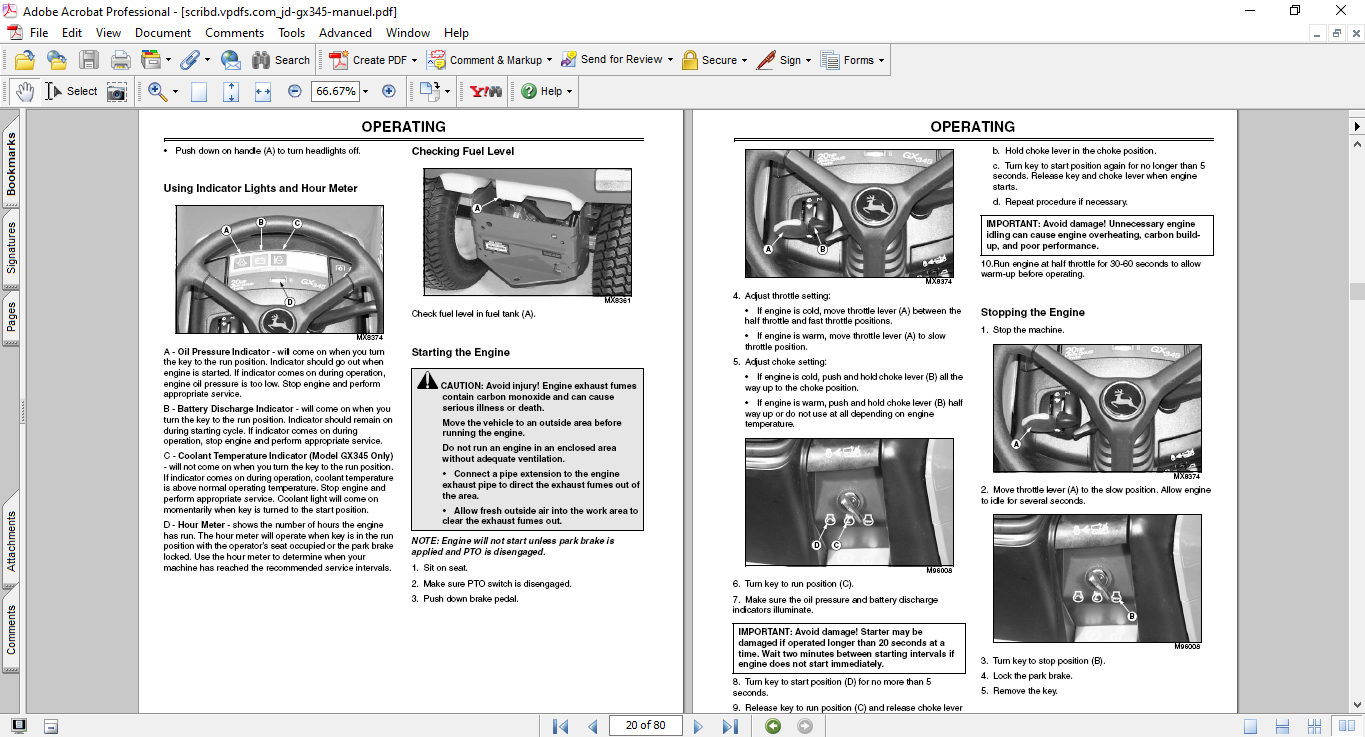 John Deere GX325, GX335 and GX345 Garden Tractor Operator’s Manual