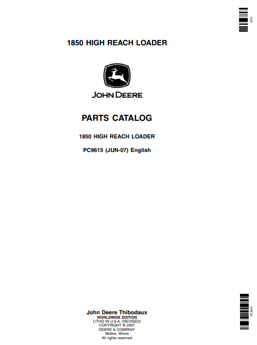 Discover the comprehensive John Deere 1850 High Reach Loader Parts Catalog, an essential resource for maintaining and enhancing the performance of your equipment. This meticulously organized catalog features an extensive array of genuine John Deere parts, ensuring that you have access to the highest quality components designed specifically for the 1850 model. Each section is clearly laid out, allowing for easy navigation through various categories, including hydraulic systems, engine components, and structural parts. With detailed diagrams and part numbers, this catalog simplifies the process of identifying and ordering the exact parts you need, minimizing downtime and maximizing productivity. Invest in the longevity and efficiency of your John Deere 1850 High Reach Loader with this indispensable parts catalog, and keep your machinery operating at peak performance