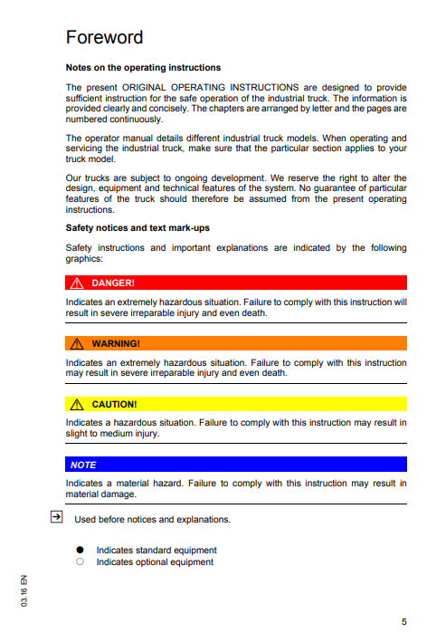 The Factory was highly recommended use this Operating Instructions Manual before you touch your Jungheinrich Forklift