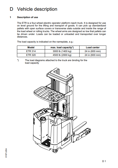 Safe operation of the industrial truck requires specialist knowledge, which is acquired from this Operating Manual, from the training required by OSHA under 29 CFR
