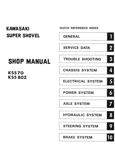 With This Original Factory Workshop Repair Manual The Technician can Find and Solve any problems encountered in the operation of your Kawasaki Super Shovel Models of :