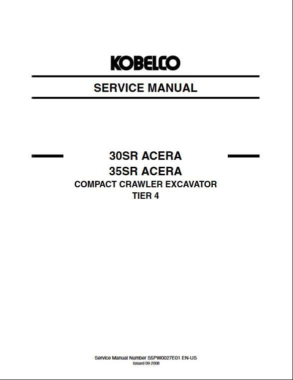 The Kobelco 30SR and SR35 Excavator Service Repair Manual is an essential resource for maintaining and repairing your excavator with precision. This comprehensive guide provides detailed instructions, diagrams, and troubleshooting tips, ensuring that you can efficiently address any issues that arise. With its user-friendly format, this manual empowers operators and technicians alike to enhance the performance and longevity of their equipment, making it a valuable addition to your maintenance toolkit. Invest in this manual today to keep your Kobelco excavator running smoothly and reliably