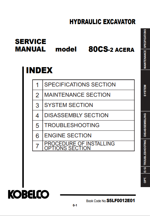 Kobelco 80CS-2 Acera Excavator Service Repair Manual