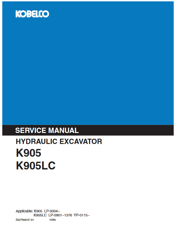Kobelco K905, K905LC Excavator Service Repair Manual