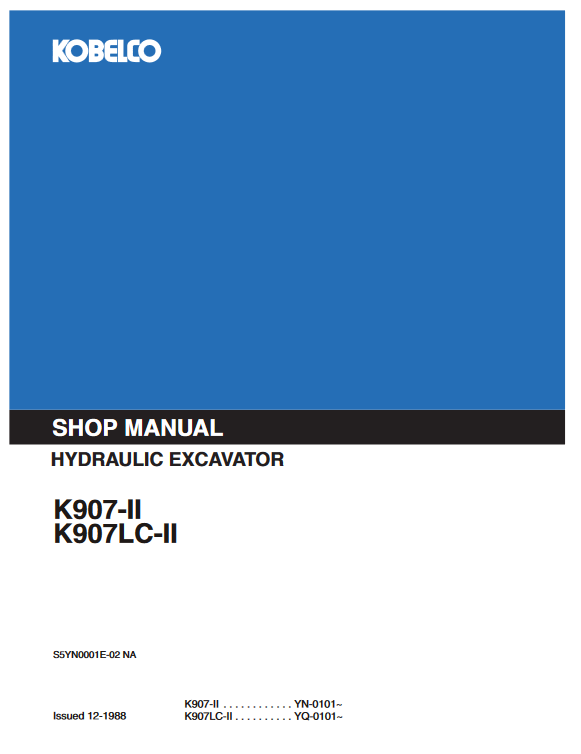 Kobelco K907-II, K907LC-II Excavator Workshop Repair Manual