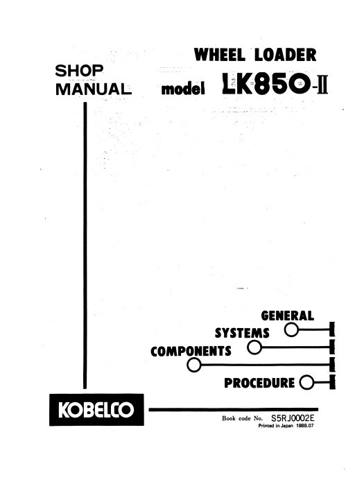 The Kobelco LK850II Wheel Loader Workshop Repair Manual is an essential resource for any technician or DIY enthusiast looking to maintain or repair their equipment efficiently. This comprehensive manual provides detailed instructions, diagrams, and specifications that simplify complex repair processes, ensuring that you can keep your loader in optimal working condition. With its user-friendly layout and clear illustrations, this manual empowers you to tackle repairs with confidence, saving you time and money while enhancing the longevity of your machinery. Invest in the Kobelco LK850II Workshop Repair Manual today and ensure your wheel loader operates at peak performance