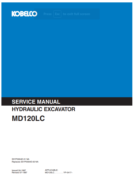 Kobelco MD120LC Excavator Service Repair Manual