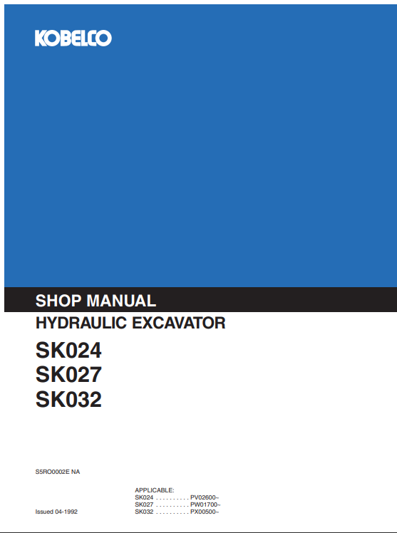 Kobelco SK024 , SK027 , SK032 Excavator Workshop Repair Manual