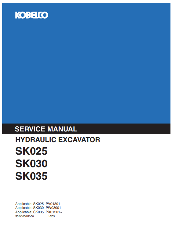 Kobelco SK025 , SK030 , SK035 Excavator Service Repair Manual