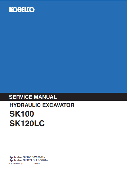 Kobelco SK100, SK120LC Excavator Service Repair Manual
