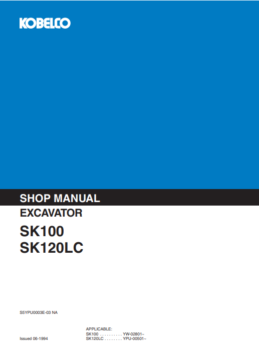 Kobelco SK100, SK120LC Excavator Service Repair Manual