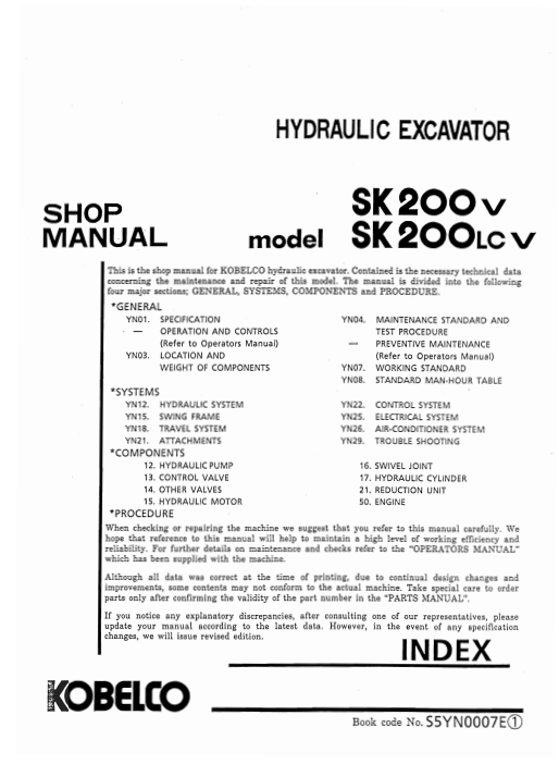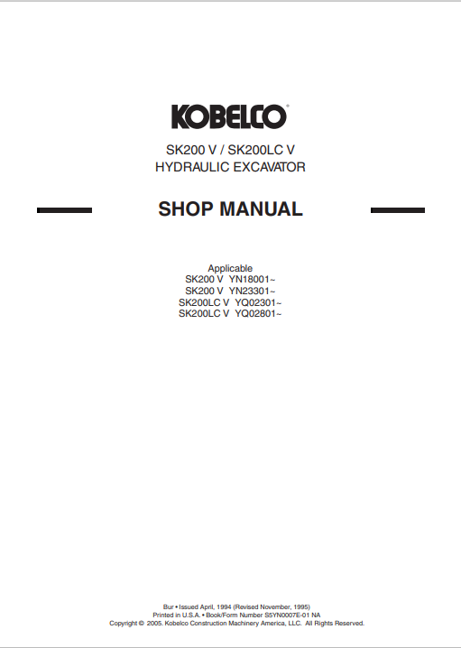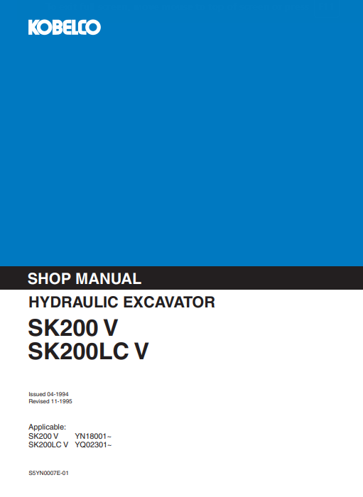 Kobelco SK200-V, SK200LC-V Workshop Repair Manual