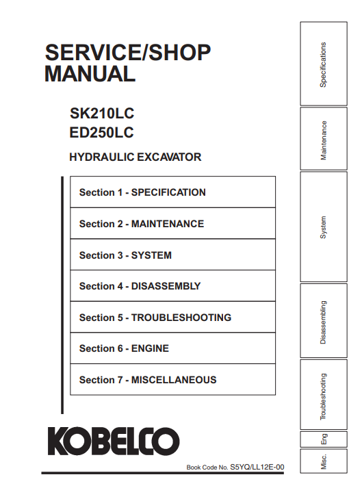 Kobelco SK210LC, SK250LC Service Workshop Manual