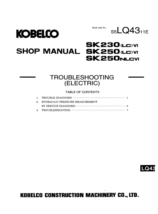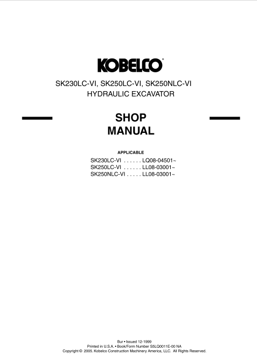 Kobelco SK230LC-VI, SK250LC-VI, SK250NLC-VI Workshop Repair Manual