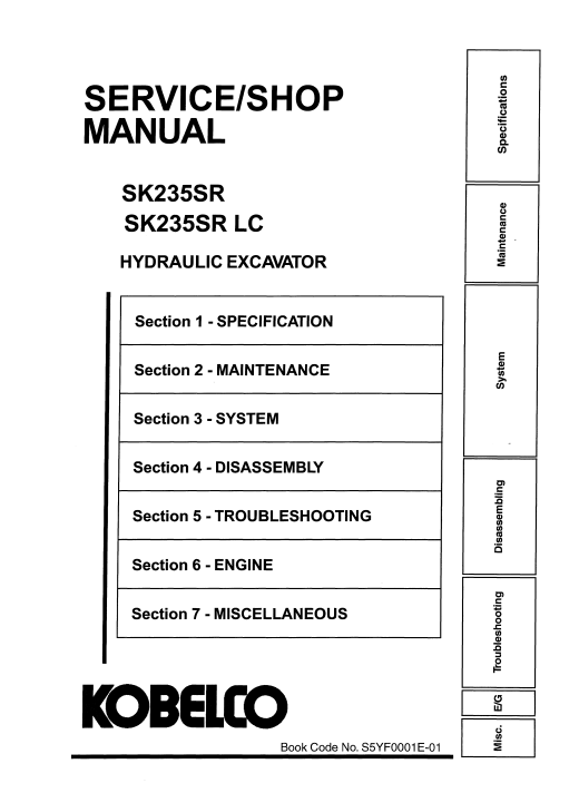 Kobelco SK235SR, SK235SRLC Service Workshop Manual