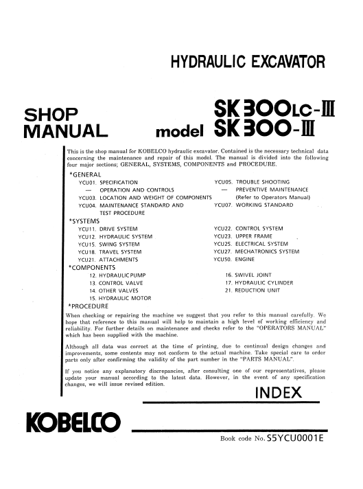 The Factory was highly recommended use this manual, Technicians before you touch Kobelco Machines