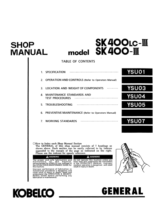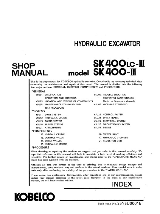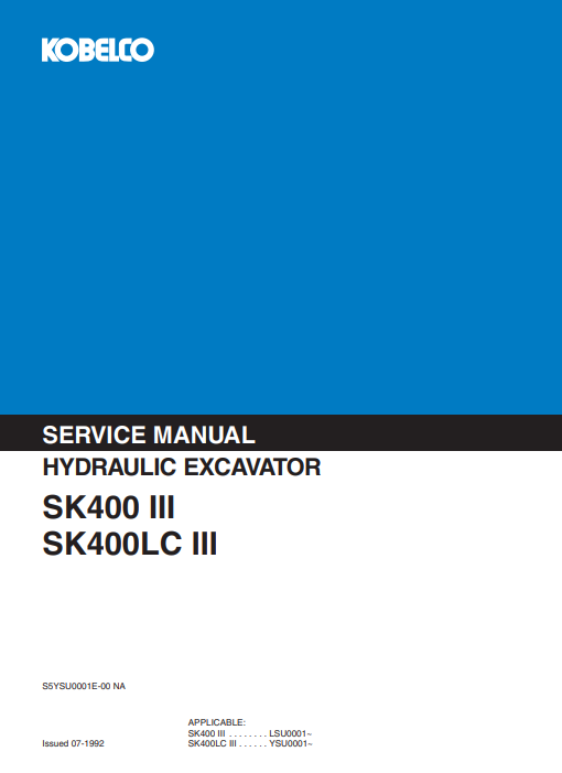 Kobelco SK400 III, SK400LC III Workshop Repair Manual