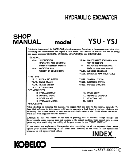 The Factory was highly recommended use this manual, Technicians before you touch Kobelco Machines