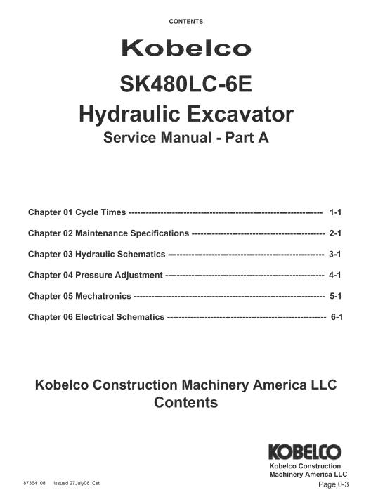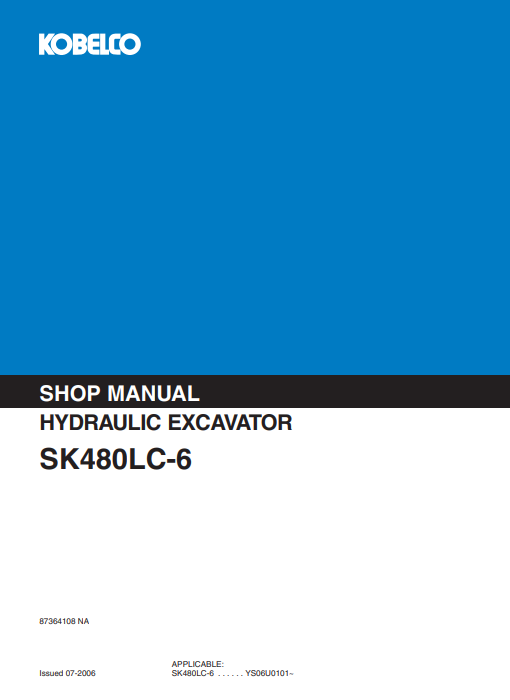 Kobelco SK480LC-6 Excavator Workshop Repair Manual