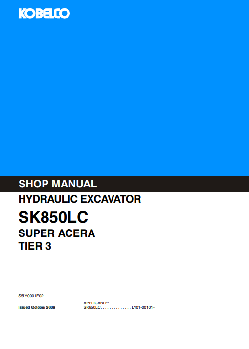 Kobelco SK850LC SUPER ACERA TIER 3 Workshop Repair Manual