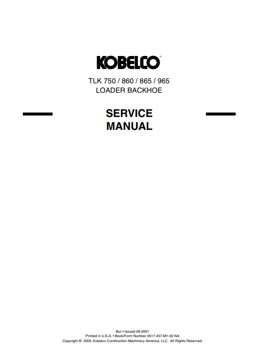 Kobelco TLK750, TLK860, TLK865, TLK965 Backhoe Loader Service Repair Manual