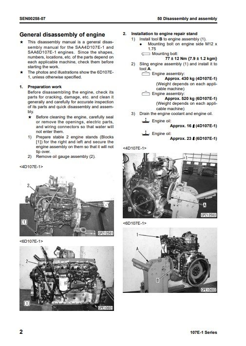 The Komatsu 107E-1 Engine Series Workshop Manual is an essential resource for professionals and enthusiasts alike, providing comprehensive guidance on maintenance and repair procedures. This manual features detailed diagrams, step-by-step instructions, and troubleshooting tips, ensuring you can efficiently service your engine and maximize its performance. With its user-friendly layout and in-depth technical information, this workshop manual is a must-have for anyone looking to maintain the reliability and longevity of their Komatsu equipment