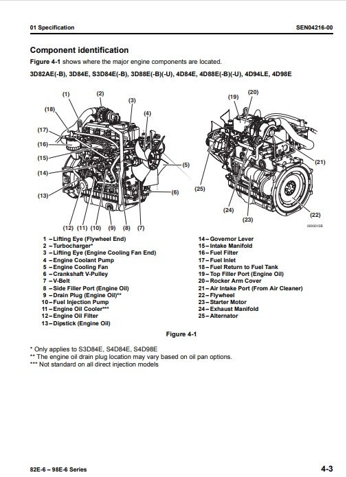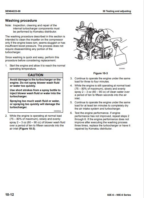 The Komatsu 82E-6 to Komatsu 98E-6 Engine Series Workshop Manual is an essential resource for professionals and enthusiasts alike, providing comprehensive guidance on maintenance and repair procedures. This manual features detailed diagrams, step-by-step instructions, and troubleshooting tips, ensuring you can efficiently service your engine with confidence. Enhance your operational efficiency and prolong the lifespan of your equipment with this indispensable tool, designed to keep your Komatsu engines running smoothly and reliably