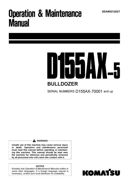 Komatsu D155AX-5 Japan Bulldozer S.N 70001-75000 Operation and Maintenance Manual